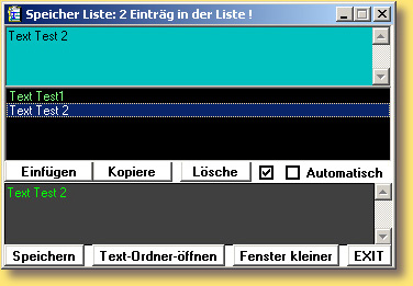 Mit Doppelklick auf die schwarze Speicher-Liste wird der grüne markierte -Text